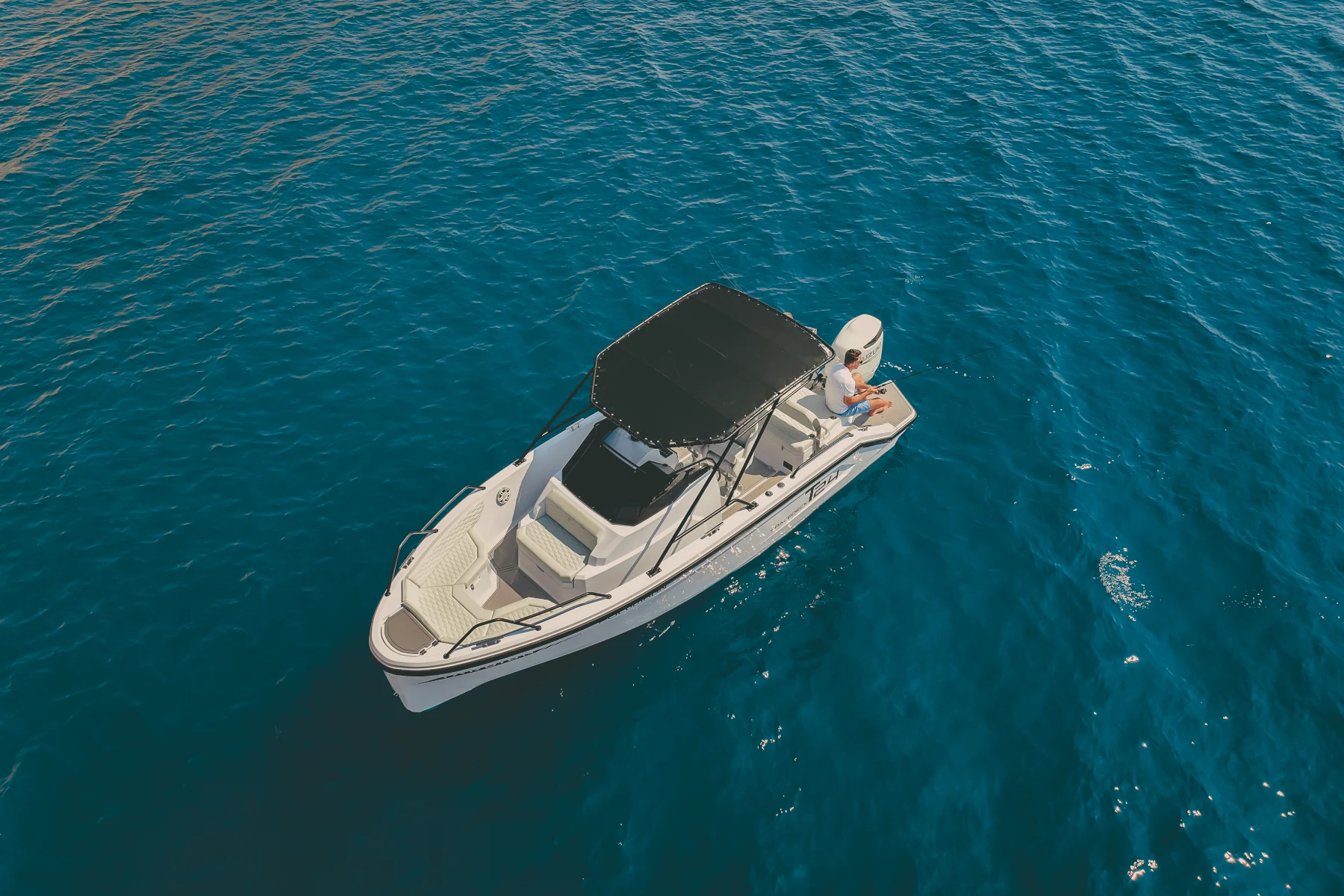 Łódź otwartopokładowa, przestronna i wszechstronna. Zaprojektowana z myślą o aktywnym spędzaniu czasu, szybkim dostępie do wody i pełnej swobodzie ruchu – niezależnie, czy planujecie rodzinny dzień na jeziorze, sporty wodne, czy rejs z przyjaciółmi.