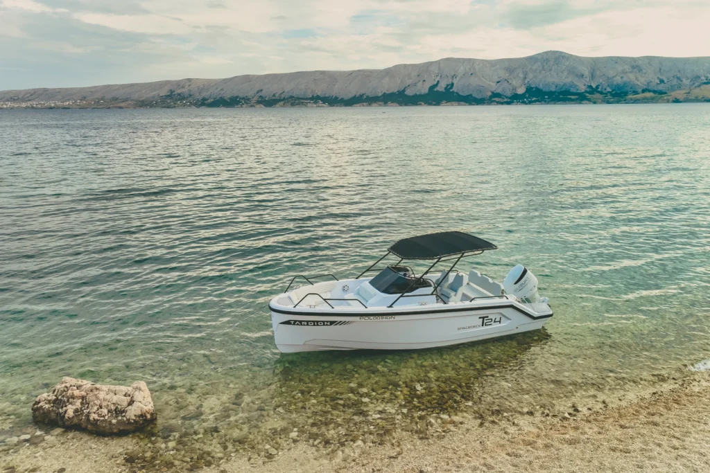 T24 Spacedeck to jacht łączący funkcjonalność i wygodę – idealny do odpoczynku, wędkowania, rejsów z rodziną i aktywnej zabawy na wodzie.